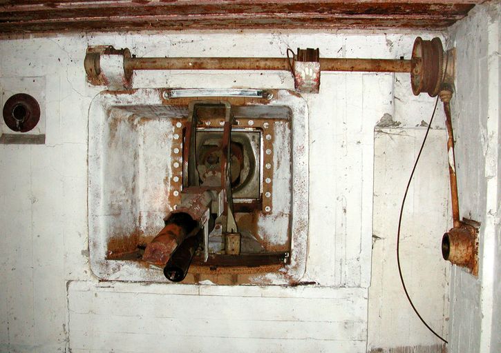 Vue du canon antichar de 4,7 cm Skoda d'origine tchèque dans son bubker casemate de type 631 (état en 2004). Le canon a été saboté en août 1944Immatriculation