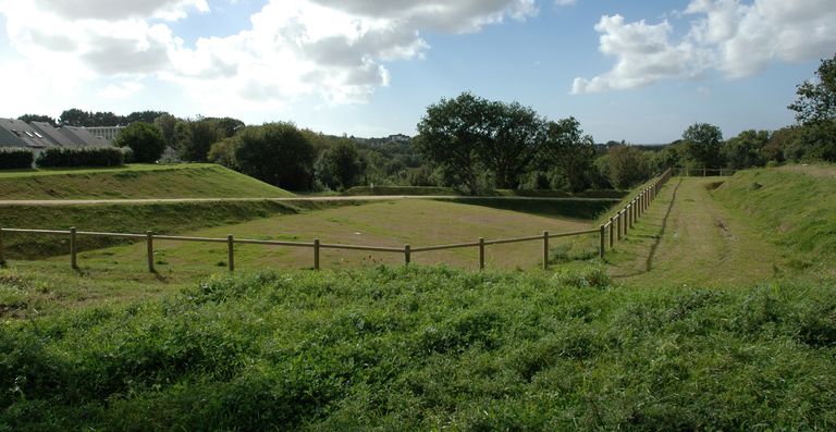 Vue générale de l'ouvrage à cornes de Quéliverzan (état en sept. 2004)Immatriculation