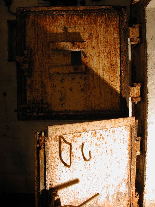 Vue de la porte blindée à deux vantaux de type 434P01 du poste d'observation/petite pièce latéraleImmatriculation