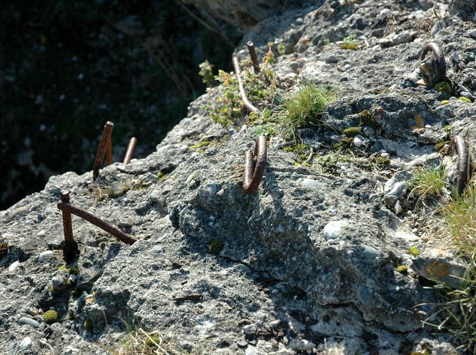 Vue de l'emplacement de la cloche blindée. Détail du béton arméImmatriculation