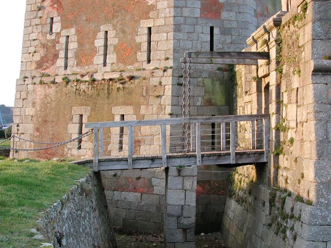 Vue du pont-levis flanqué par la tour à gaucheImmatriculation
