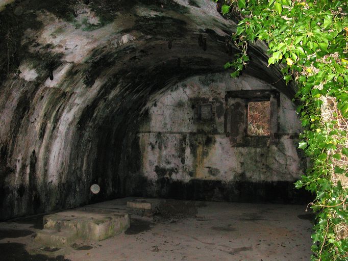 Groupe de 2 projecteurs de 60 cm et 90 cm et usine électrique, au ras de l'eau, Pointe Robert (Roscanvel),