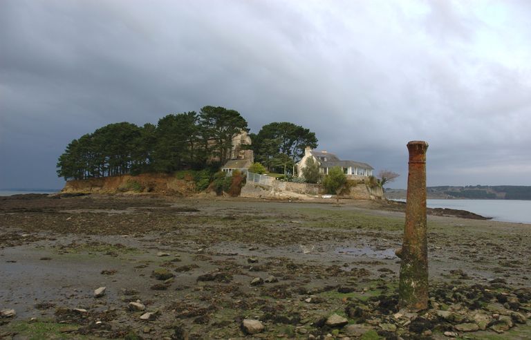 Rosnoën : vue générale de l'île d'Arun à marée basseImmatriculation