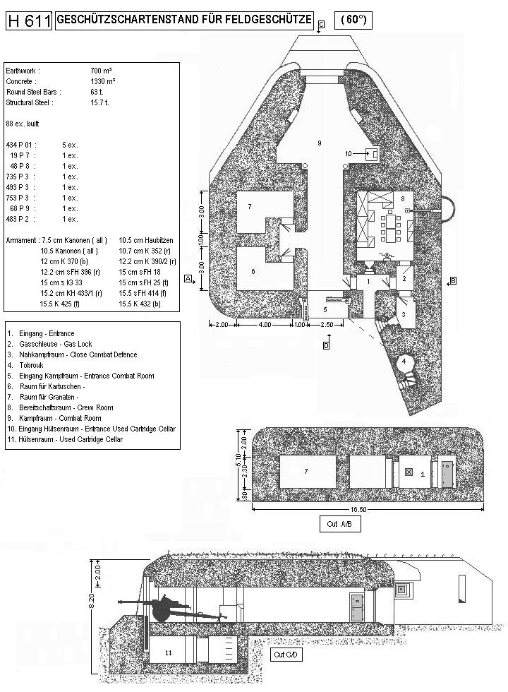 Plan d'un bunker - casemate de type 611 (dessin : Patrick Fleuridas)Immatriculation