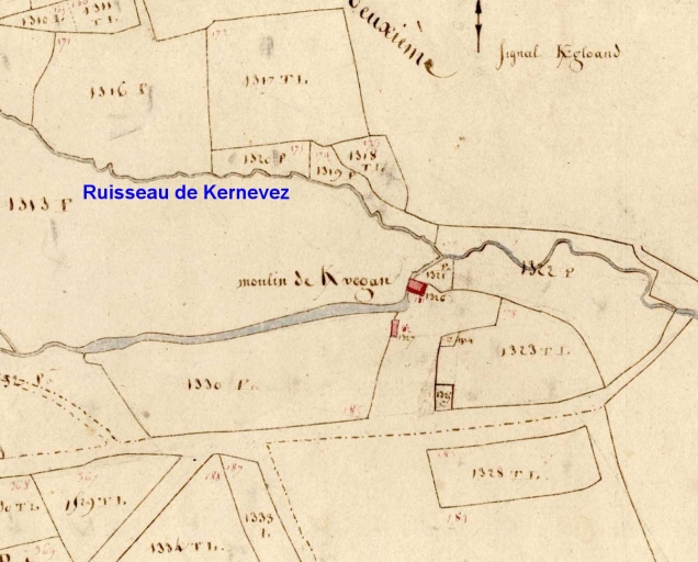 Le moulin de Kervégan (ou Kerlégan). Extrait du cadastre de 1810, section D 3Immatriculation