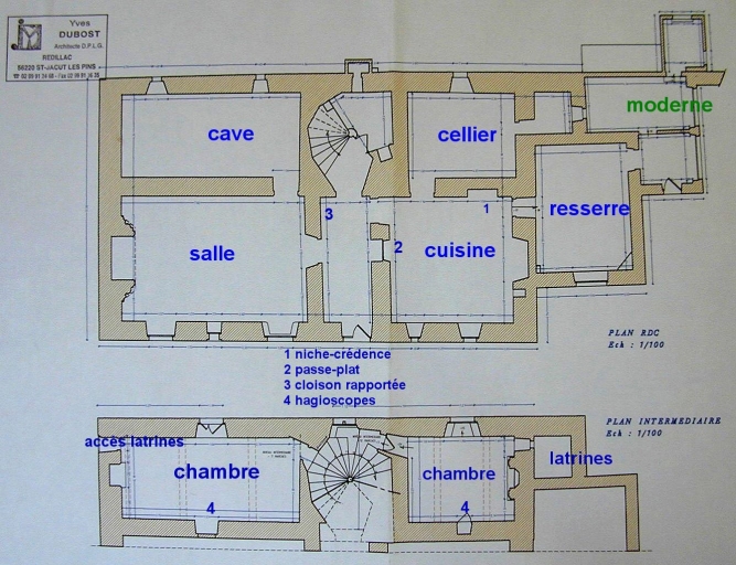 Plan du rez-de-chaussée et du niveau intermédiaire (relevé Yves Dubost, architecte)Immatriculation