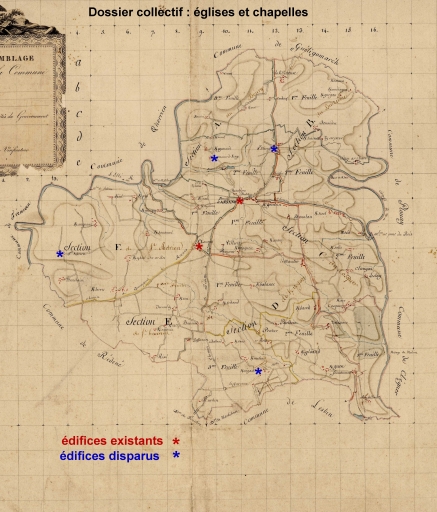 Emplacement des édifices religieux sur fond du tableau d'assemblage de 1811Immatriculation