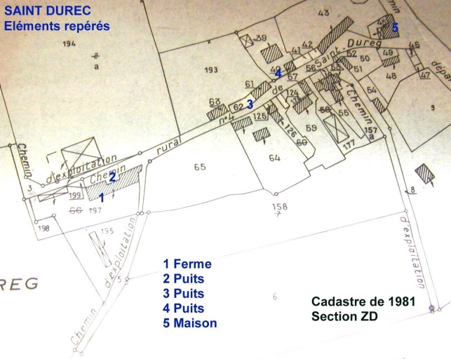 Emplacement des éléments repérés sur fond du cadastre de 1981Immatriculation