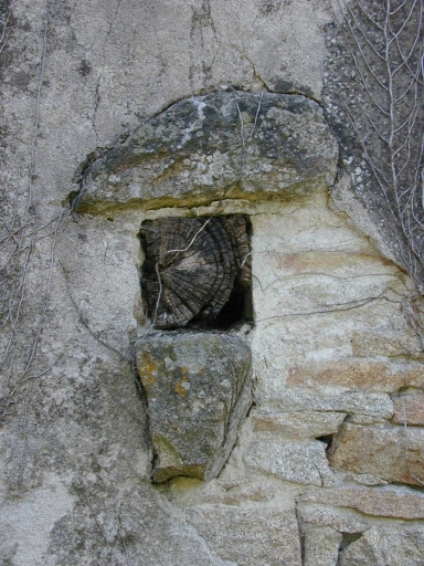 Ancien logis de ferme (parcelle 287), détail d'un larmier en pierre protégeant un corbelet de cheminée en boisImmatriculation