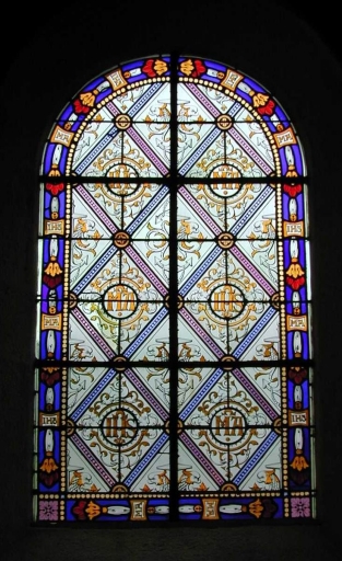 Ensemble de deux verrières géométriques par Hucher, atelier du Carmel du MansImmatriculation