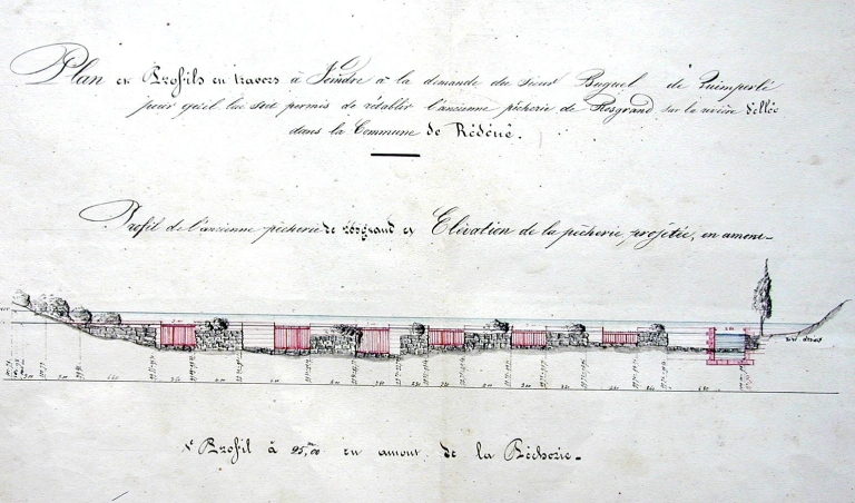 Projet de rétablissement des pêcheries de Rosgrand, élévations et profils, 1844 (A.D. Finistère, 7 S 25)Immatriculation