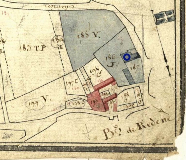 L'emprise au sol de l'ancien presbytère. Extrait du cadastre de 1811, section B 1 (A.D. Finistère, 3 P 293)Immatriculation