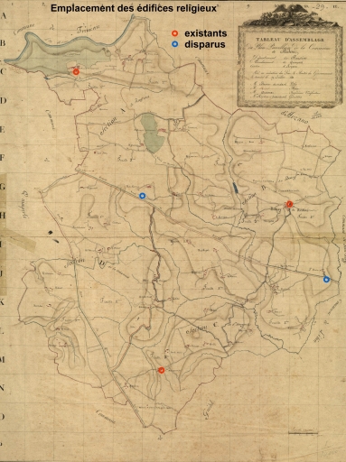 Emplacement des églises et chapelles sur fond du tableau d'assemblage de 1811Immatriculation