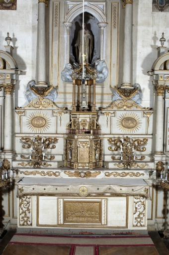 Ensemble du maître-autel : autel, retable, 3 gradins d'autel, 2 degrés d'autel, exposition,