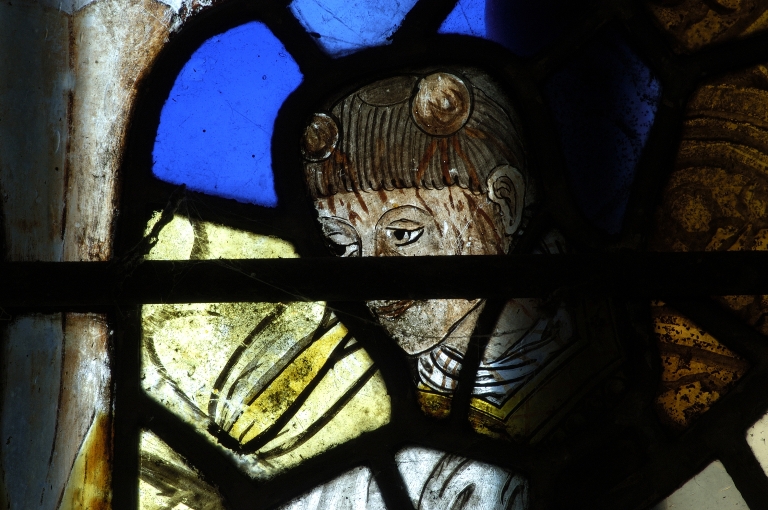 Verrière à personnages de la baie 1 : Christ en croix, Martyre de saint Etienne,
