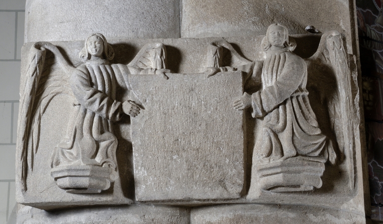 Cinq reliefs, une frise, un lavabo en niche et un dais d'architecture,