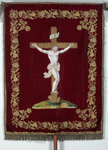 Bannière de procession : saint Pierre et la crucifixion,