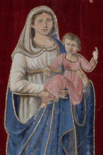 Bannière de procession : Christ en croix et Vierge à l'Enfant,