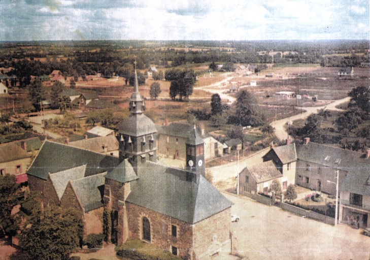 Vue aérienne sud-est vers 1960, avec l'ancien presbytère au nord.Immatriculation