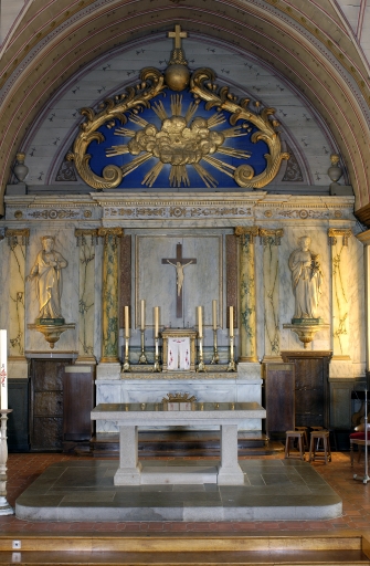 Ensemble du maître-autel : autel, tabernacle, retable, 2 gradins d'autel, 2 degrés d'autel,
