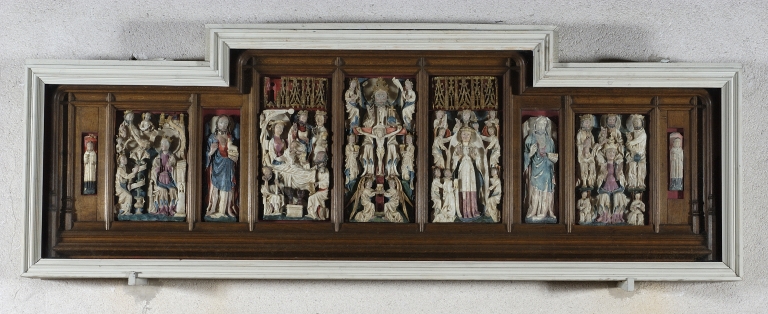 Retable de la Vierge : Vie de la Vierge, Saint Jean-Baptiste, Sainte Barbe, Saint Laurent, Saint Etienne, Saint Thomas reçoit la ceinture de la Vierge,