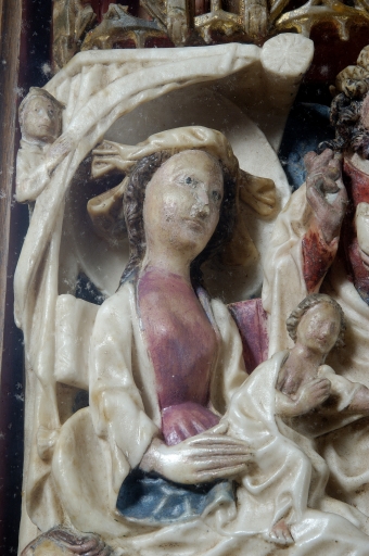 Retable de la Vierge : Vie de la Vierge, Saint Jean-Baptiste, Sainte Barbe, Saint Laurent, Saint Etienne, Saint Thomas reçoit la ceinture de la Vierge,