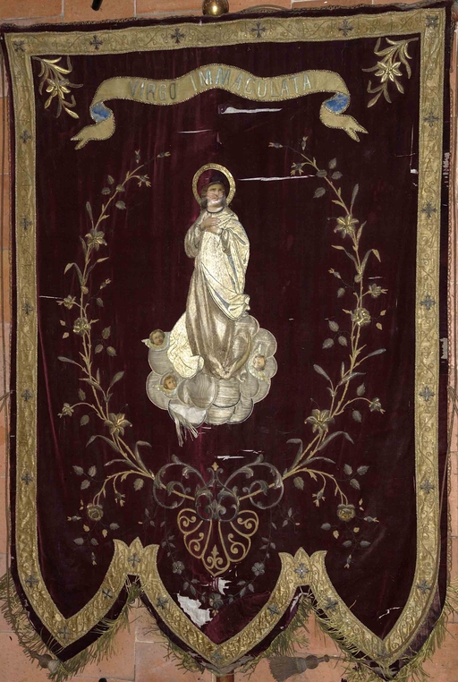 Bannière de procession : Immaculée conception, Sacré Cœur, église Saint-Aubin (Saint-Aubin-du-Pavail fusionnée en Châteaugiron en 2017),