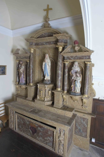 Ensemble de l'autel du Sacré Coeur : autel, tabernacle, 2 gradins d'autel, retable, degré d'autel,