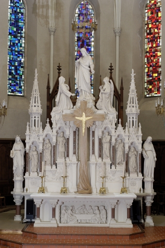 Ensemble du maître-autel : autel, tabernacle, retable, 2 gradins d'autel, degré d'autel,