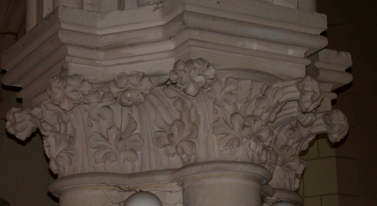 Les chapiteaux, deux clés de voûte et les culots de l'église,