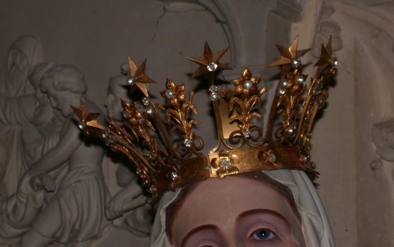Statue couronnée sur socle : Vierge, dite Notre-Dame de Lourdes,