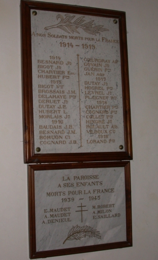 Tableau commémoratif des morts des deux premières guerres mondiales,