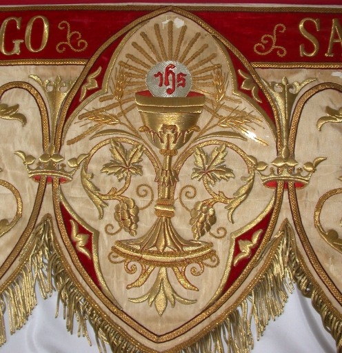Détail de la garniture de dais : Calice et ostieImmatriculation