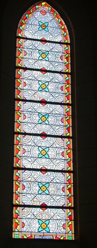 Ensemble des 9 verrières à personnages des baies 0 à 8 : Sacré Coeur, Saint Méen, Saint Laurent, Saint Lunaire, Saint Isidore, Saint François d'Assise, Saint Louis de Gonzague, Vie de la Vierge, et des 7 verrières décoratives de la nef,