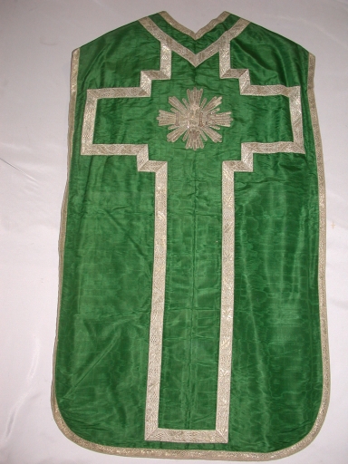 Ornement vert 1 : chasuble, bourse de corporal, étole, voile de calice,
