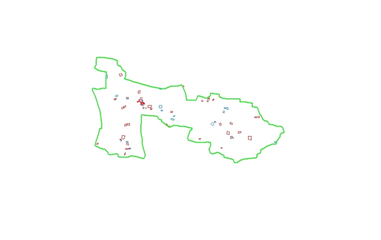 Carte des maisons et fermes simplement recensées en bleu, documentées en rougeImmatriculation