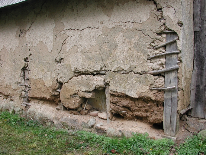 Torchis du cellier : la terre est maintenue entre les colombes par des palançonsImmatriculation