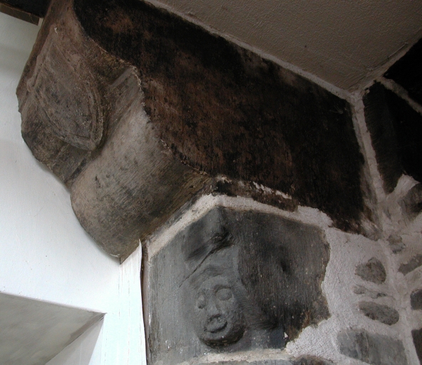 Détail du décor anthropomorphe et des armoiries (illisibles)Immatriculation