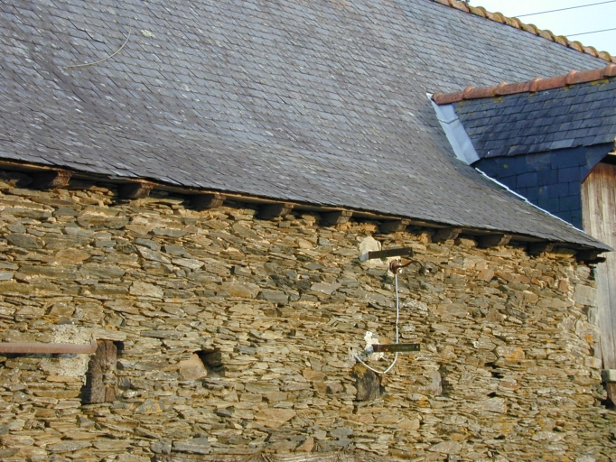 Détail de la maçonnerie et de la corniche en bois sculptée de l'étableImmatriculation