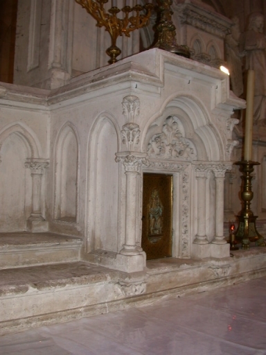 Le maître-autel : autel, retable, tabernacle et ses statues : le Sacré coeur, saint Martin et deux anges,