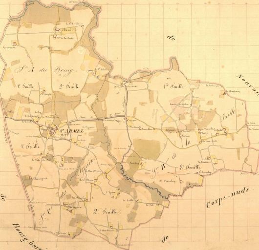 Tableau d'assemblage du plan cadastrale de Saint-Armel en 1849Immatriculation
