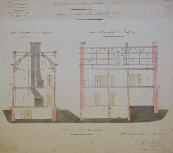 Coupes intérieures sur la largeur et sur la longueur, Auguste Marchand, 1881Immatriculation