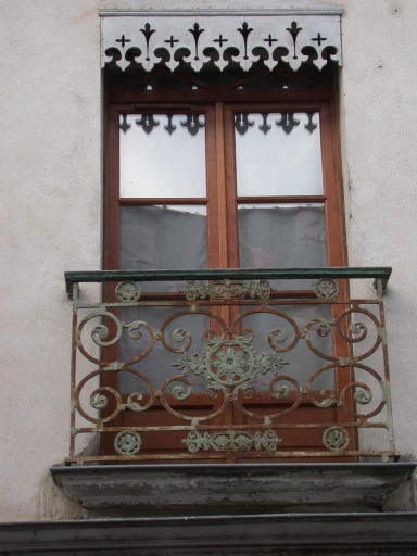 Fenêtre de l'étage avec lambrequin et ferronnerieImmatriculation