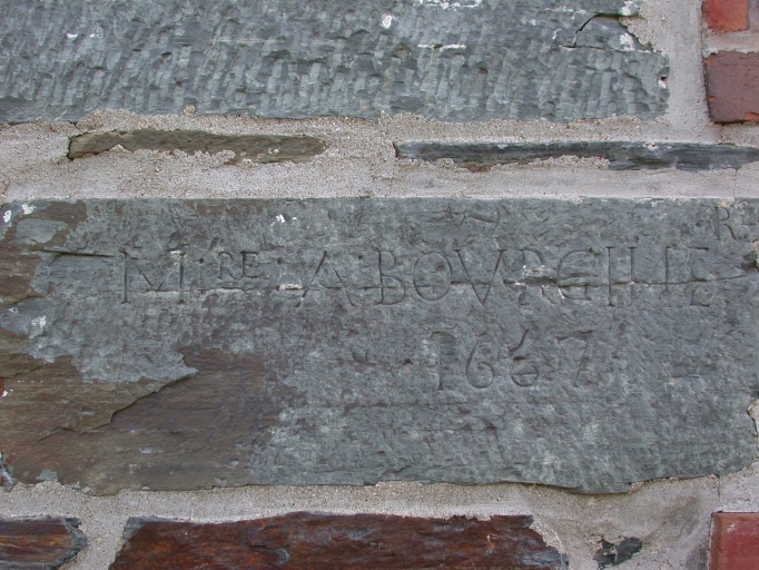 Pierre remployée dans la maçonnerie avec inscriptionImmatriculation