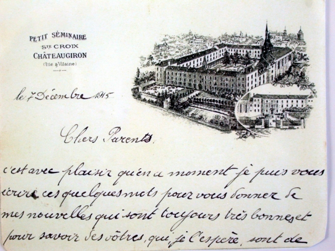 Pétit Séminaire Sainte Croix, papier à lettre vers 1900, vue cavalièreImmatriculation
