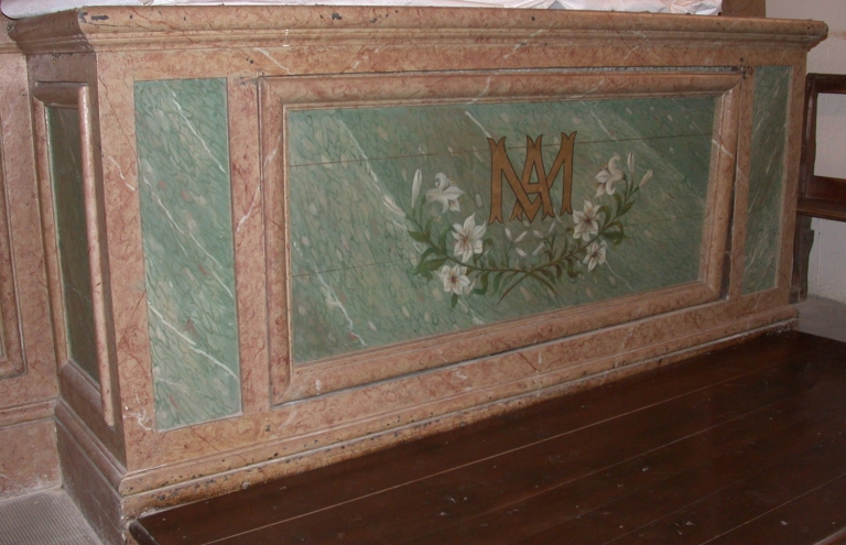 Ensemble de l'autel de la Vierge : autel, tabernacle, 2 gradins d'autel, retable, degré d'autel,