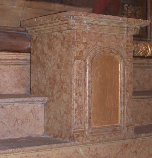 Ensemble de l'autel de la Vierge : autel, tabernacle, 2 gradins d'autel, retable, degré d'autel,