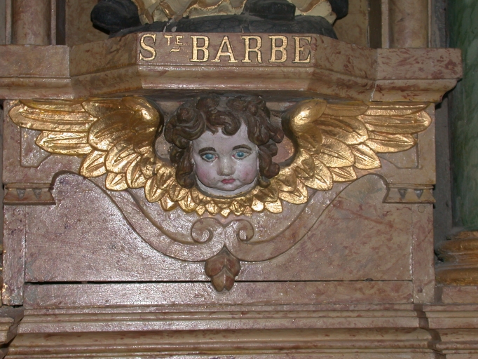 Ensemble de l'autel de la Vierge : autel, tabernacle, 2 gradins d'autel, retable, degré d'autel,