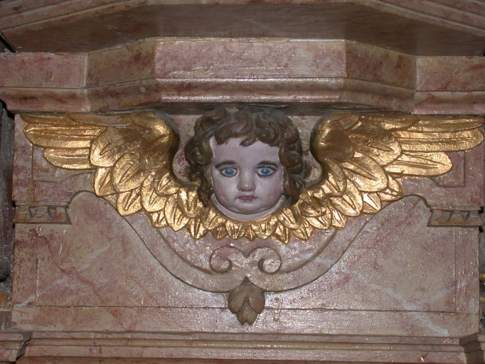 Ensemble de l'autel de la Vierge : autel, tabernacle, 2 gradins d'autel, retable, degré d'autel,