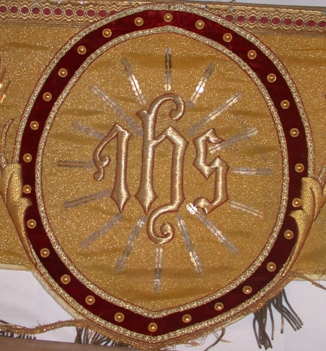Garniture de dais de procession, décor d'un panneau : monogramme IHSImmatriculation